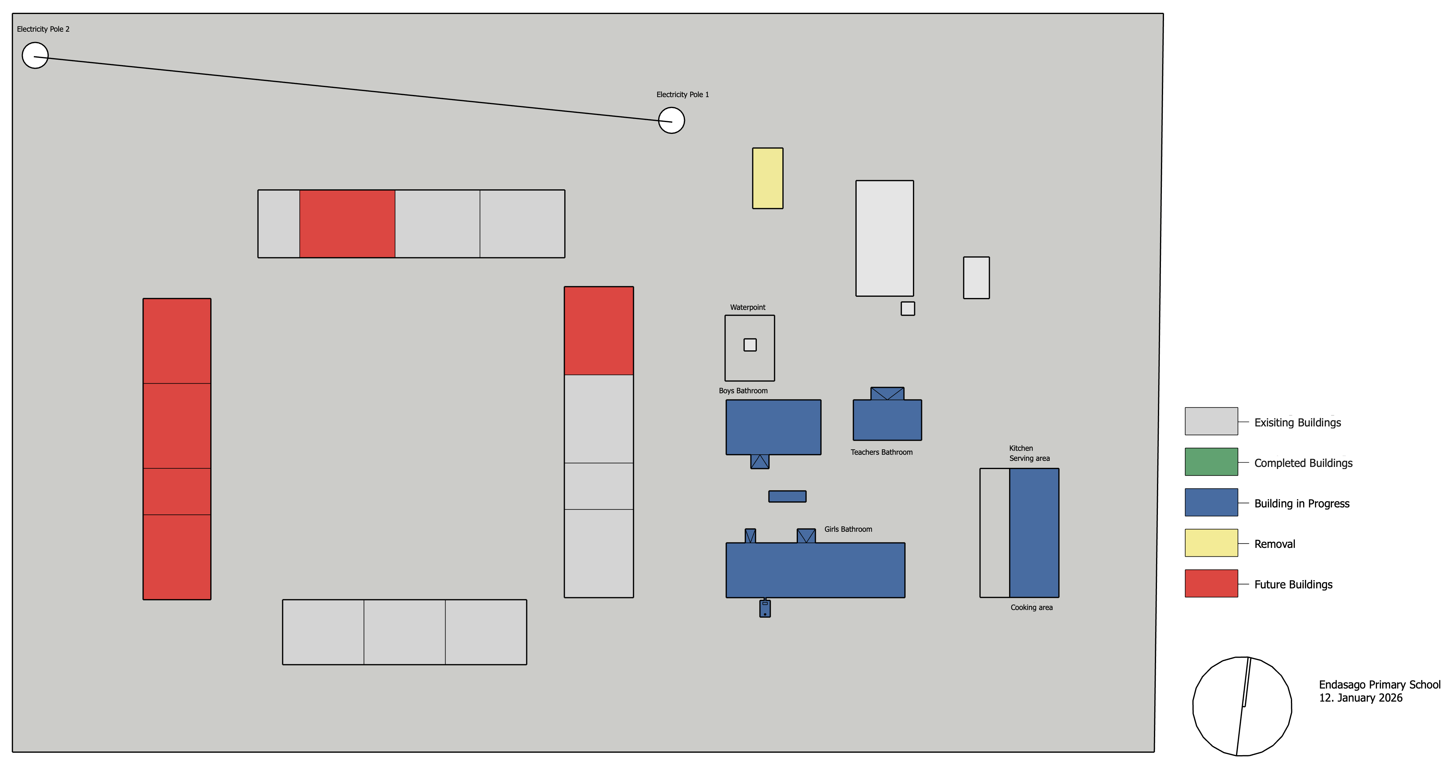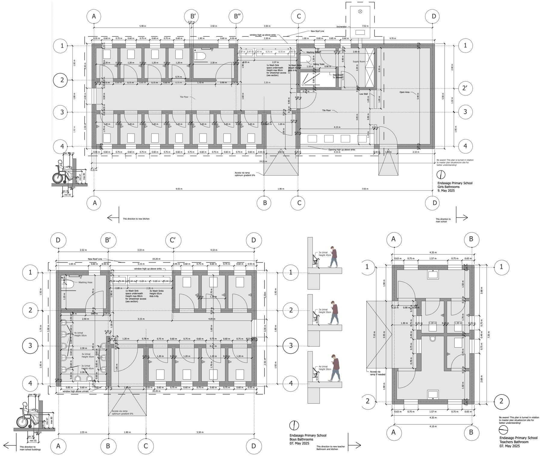 Karimu is working with the local community to build boys, girls, and teachers bathrooms together with an appropriate sewage treatment system for the 376 students and 10 teachers at Endasago Primary. The construction will include urinals and squat toilets as appropriate by gender, seated toilets with ramp accessibility for disabled students, and menstrual accommodations including showers, washing sinks, clothes lines, and an incinerator for girls.